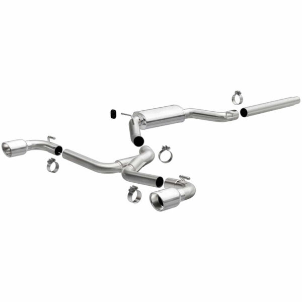 The MagnaFlow Volkswagen GTI Touring Series 19435 brings enhanced engine sound and dyno-proven performance to your 2.0L 2018-2021 Volkswagen GTI with a healthy helping of our deep, resonant signature exhaust note at Moderate exterior and Mild interior sound levels. Thanks to its durable, corrosion resistant stainless steel design, this Volkswagen GTI exhaust system will handle whatever tarmac you decide to leave your mark on. This performance exhaust kit features a crossmember-back layout designed to replace your Volkswagen GTI s exhaust system from the crossmember on back. With its fast-flowing, mandrel bent 3in. main piping and 1 Straight-Through muffler ending in a Dual Split Rear exit with 4 Polished Welded-Double Wall-Angle Cut-Rolled Edge-Resonated tips, your muscle car will be sounding as awesome as it looks. Extensive 3D scanning during development has resulted in a direct-fit design that you can easily install yourself. 19435 is produced using CNC precision robotic manufacturing techniques and is backed by MagnaFlow s limited lifetime construction warranty.